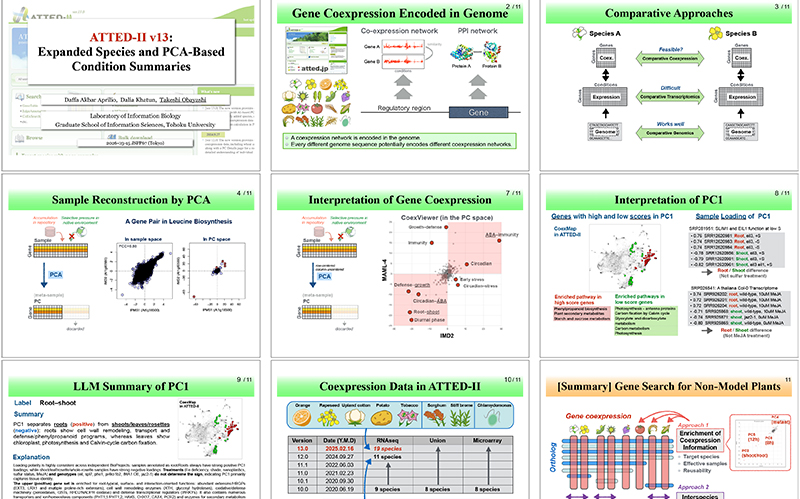 Obayashi T. ATTED-II Version 12.0: A Plant Gene Coexpression Database for Comparative Analysis Across Flowering Plants, 第66回日本植物生理学会年会, 2025年3月14日, 金沢大学. -